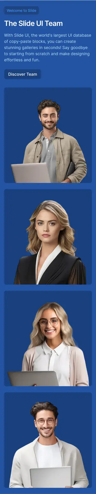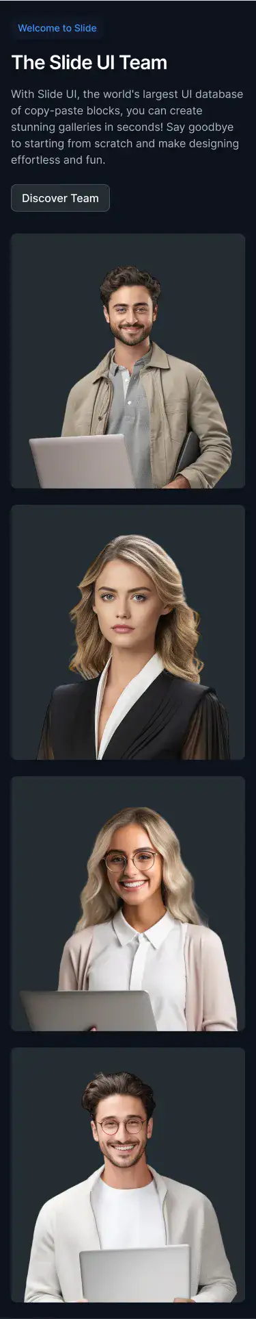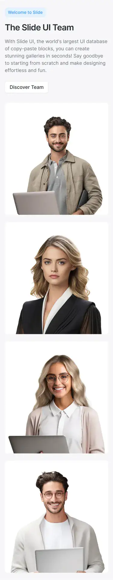 Lightweight sections for storytelling, intros, or visual breaks. Ideal for portfolios, agencies, and SaaS.