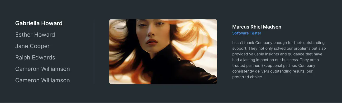 High-trust testimonial sections with avatars, logos, quotes, or carousels. Designed to increase credibility and conversions.