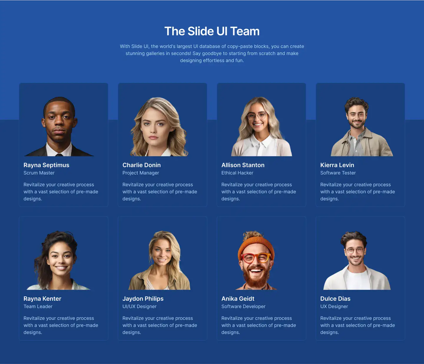 Lightweight sections for storytelling, intros, or visual breaks. Ideal for portfolios, agencies, and SaaS.