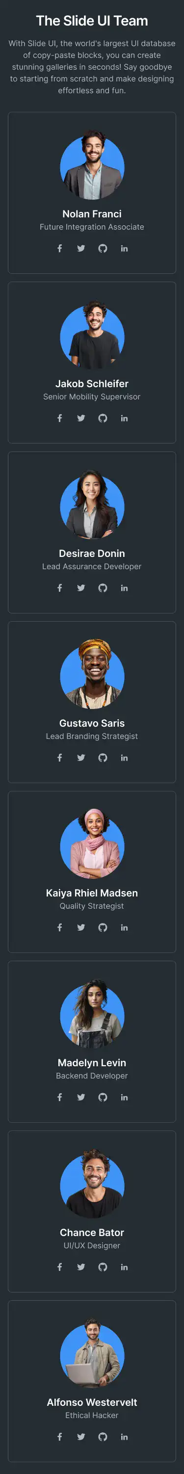 Team Layout for Figma — swiss, themeable and responsive across Desktop, Tablet and Mobile. Includes Light, Dark and Accent modes for fast customisation. Ideal for Fitness, Government, Healthcare.