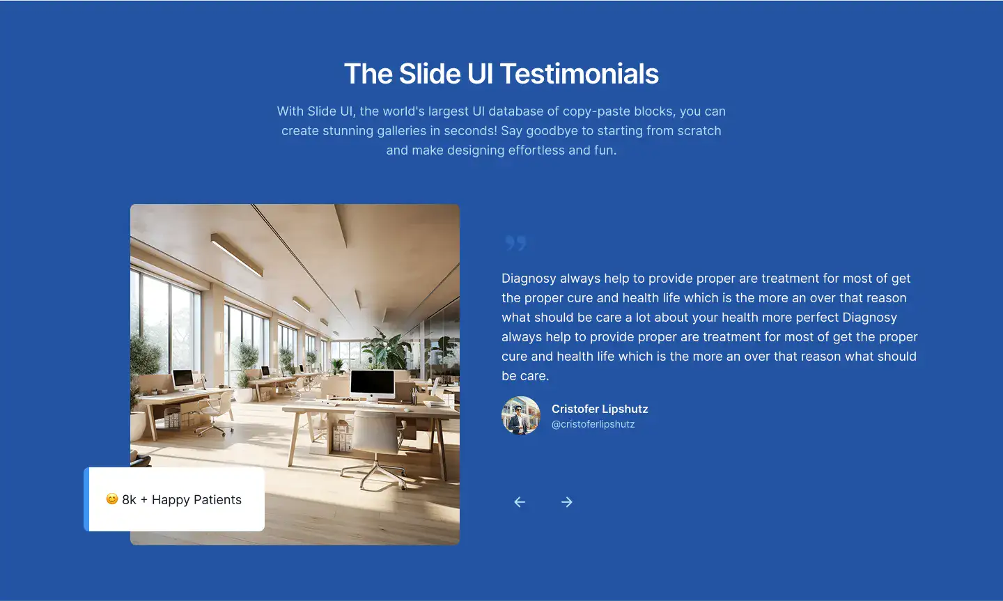 High-trust testimonial sections with avatars, logos, quotes, or carousels. Designed to increase credibility and conversions.