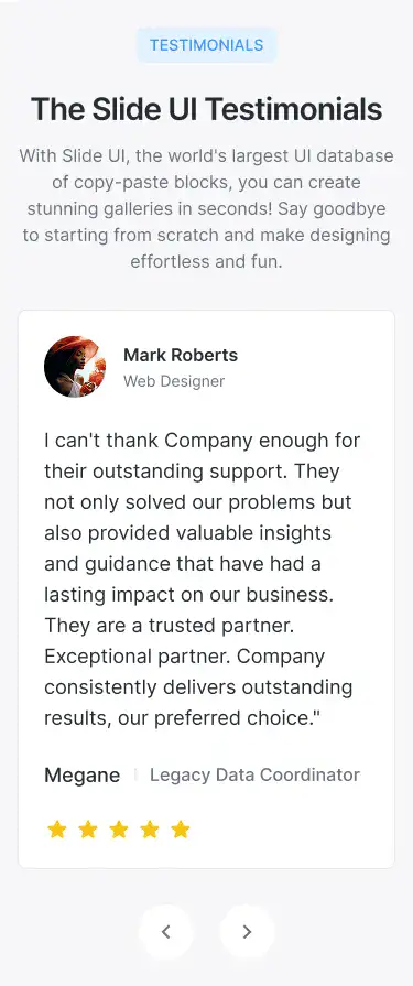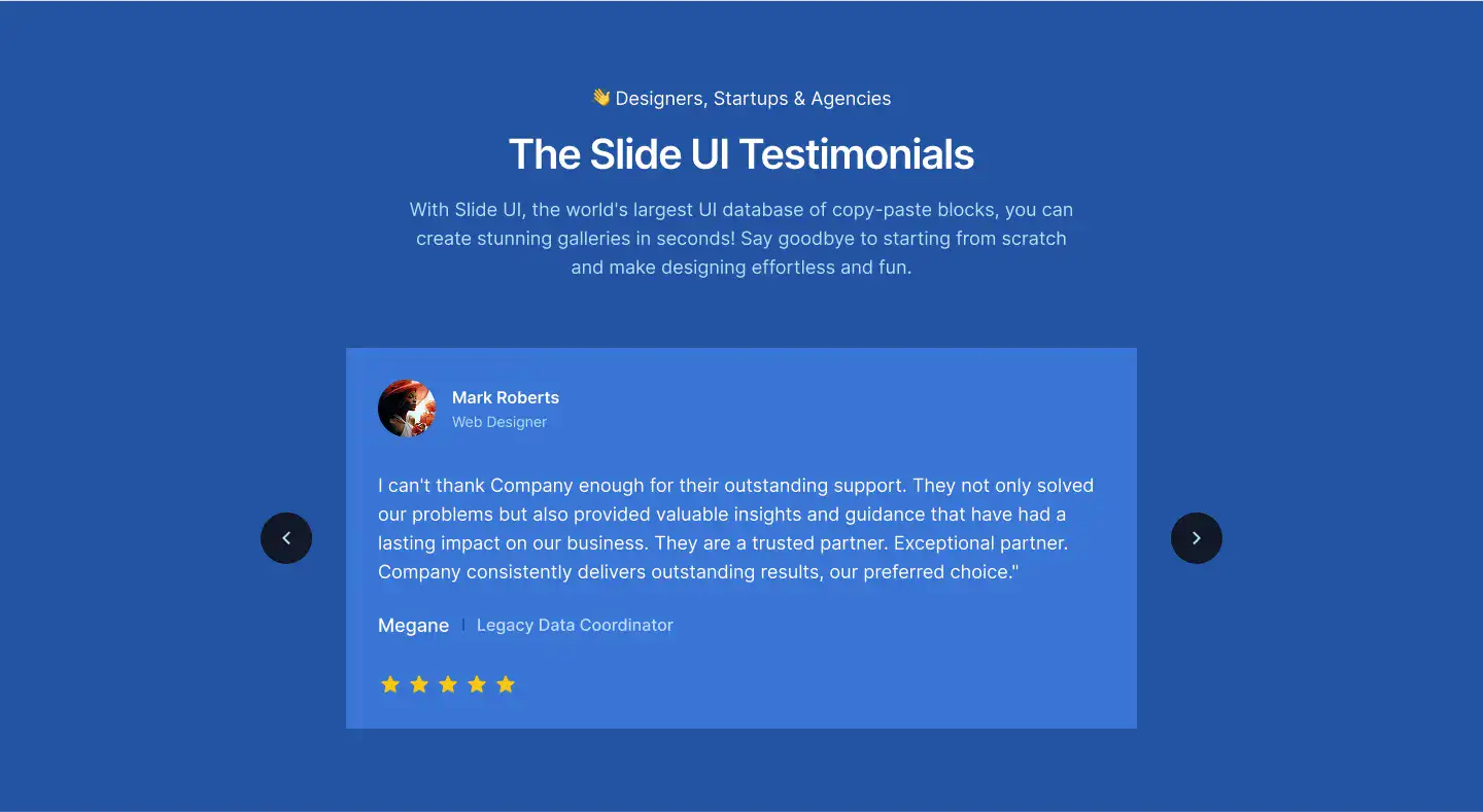 High-trust testimonial sections with avatars, logos, quotes, or carousels. Designed to increase credibility and conversions.