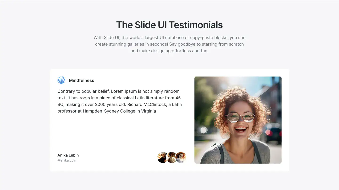 High-trust testimonial sections with avatars, logos, quotes, or carousels. Designed to increase credibility and conversions.