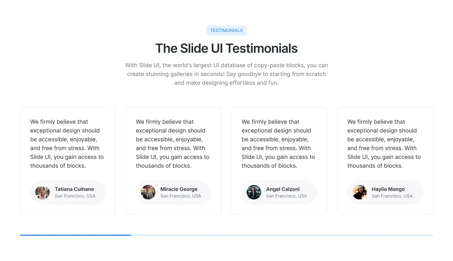 High-trust testimonial sections with avatars, logos, quotes, or carousels. Designed to increase credibility and conversions.