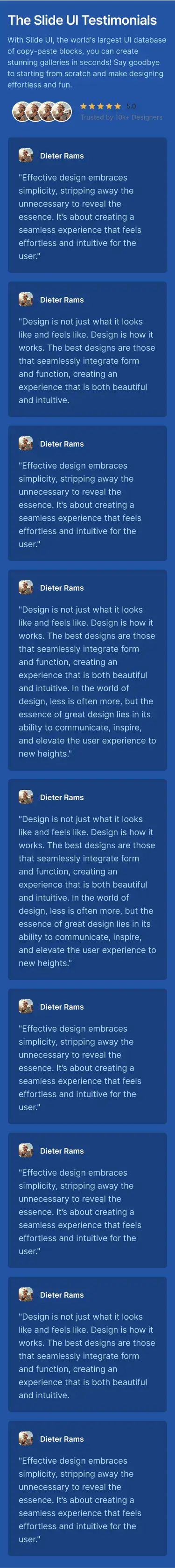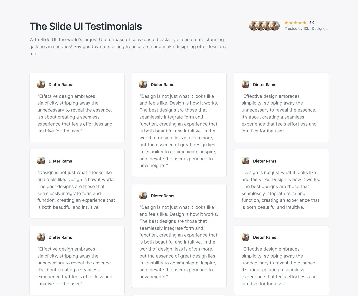 High-trust testimonial sections with avatars, logos, quotes, or carousels. Designed to increase credibility and conversions.