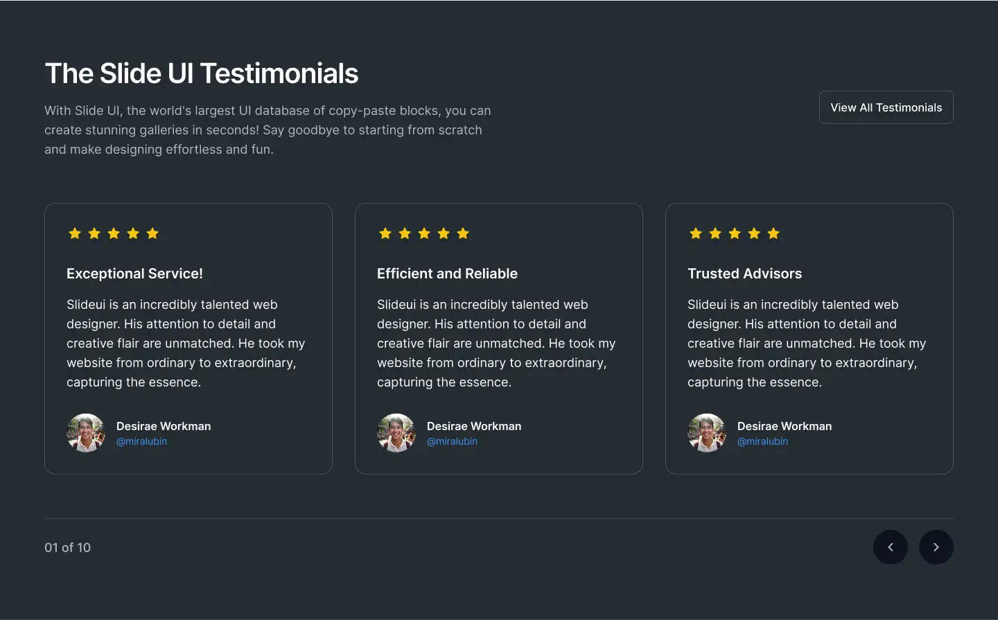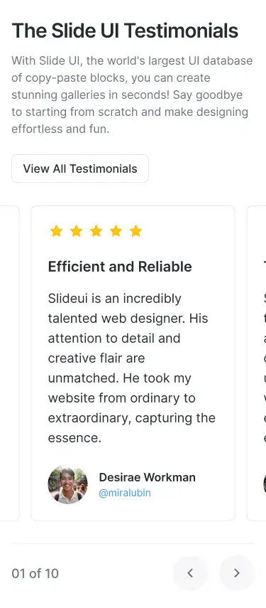 View Testimonial blocksTechnical details, product highlights, feature breakdowns — structured for clarity and mobile responsiveness.