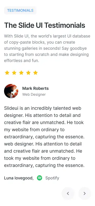 High-trust testimonial sections with avatars, logos, quotes, or carousels. Designed to increase credibility and conversions.