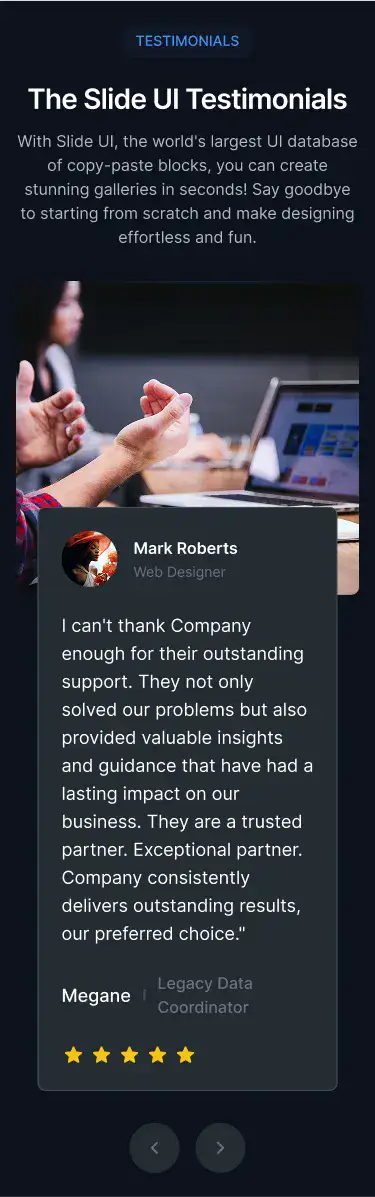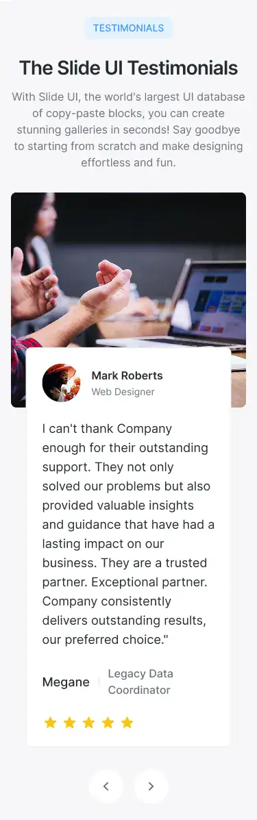 High-trust testimonial sections with avatars, logos, quotes, or carousels. Designed to increase credibility and conversions.