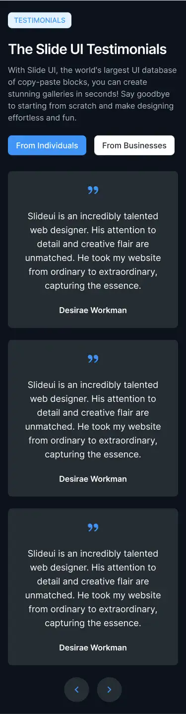 High-trust testimonial sections with avatars, logos, quotes, or carousels. Designed to increase credibility and conversions.
