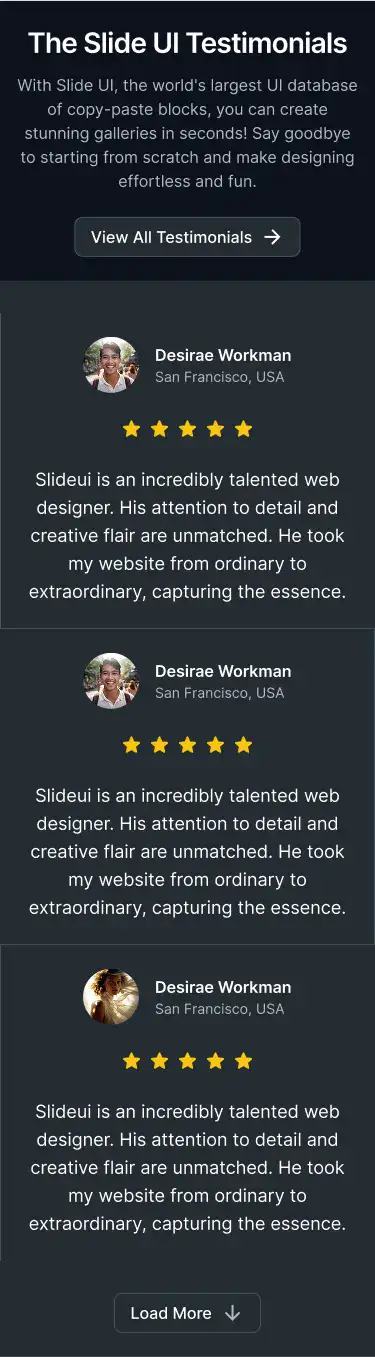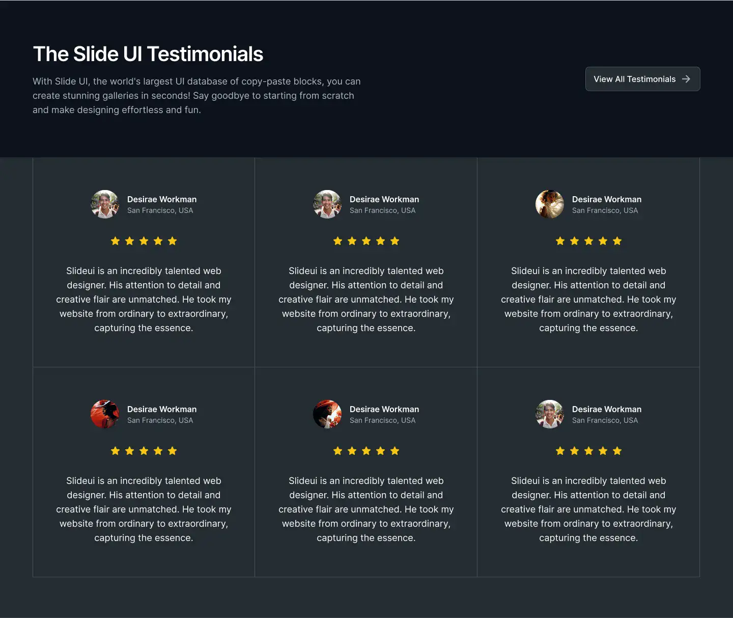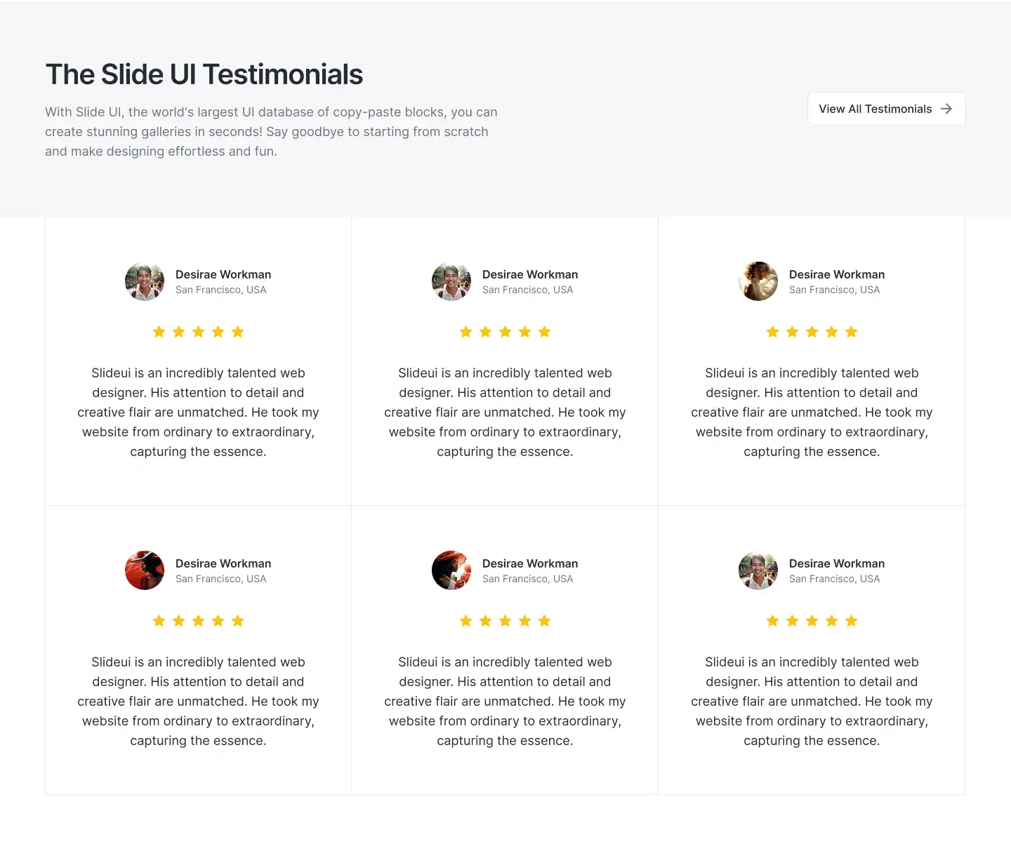 View Testimonial blocksTechnical details, product highlights, feature breakdowns — structured for clarity and mobile responsiveness.