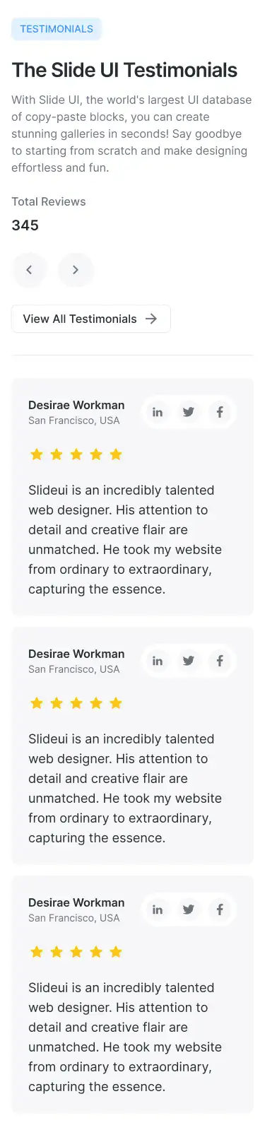 View Testimonial blocksTechnical details, product highlights, feature breakdowns — structured for clarity and mobile responsiveness.