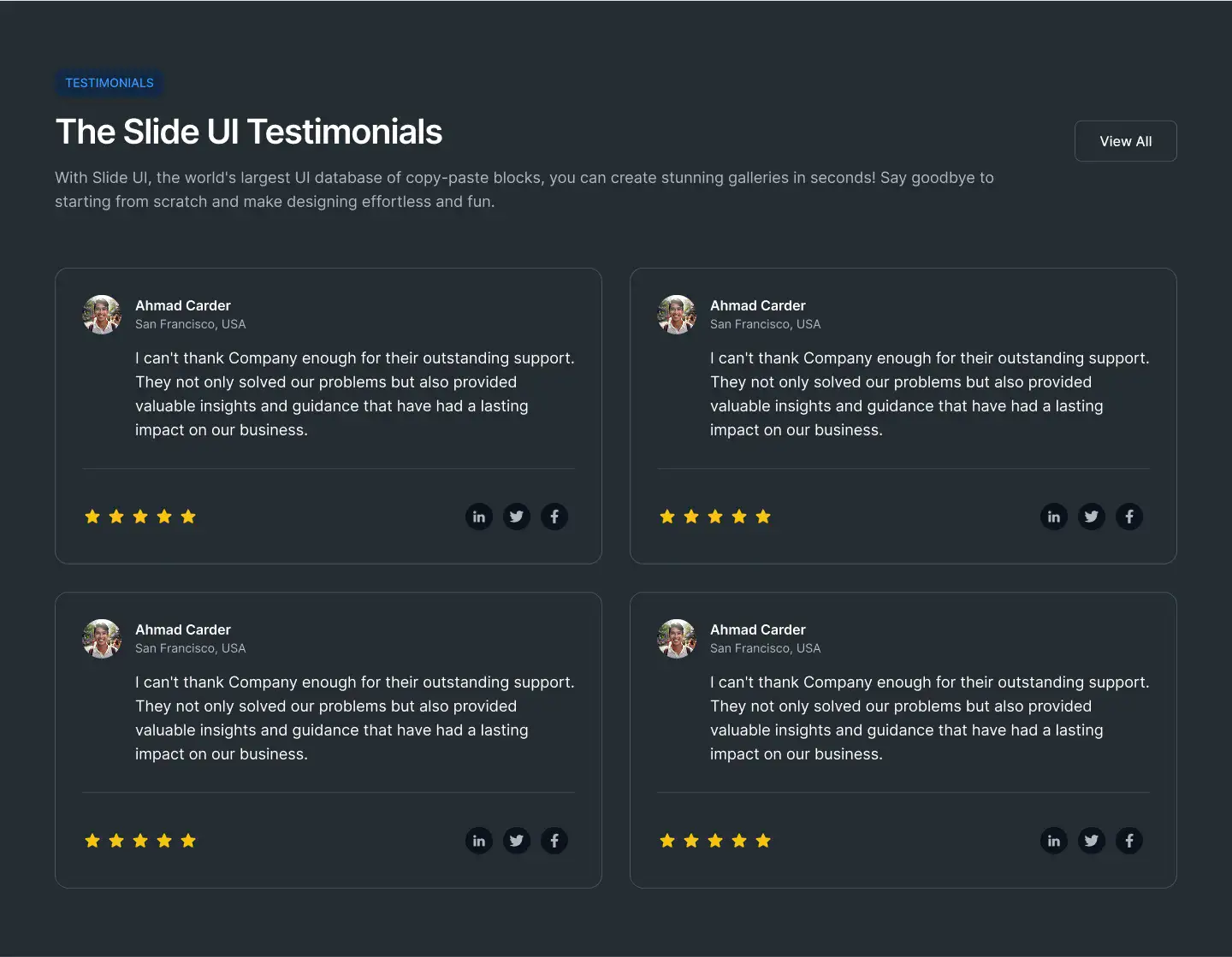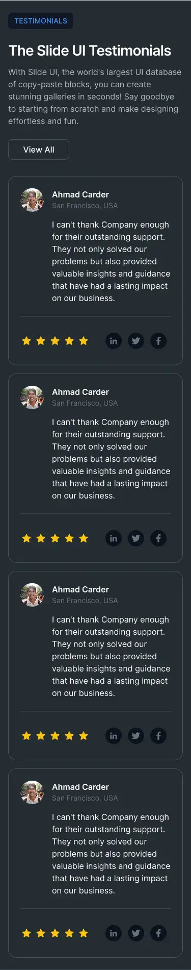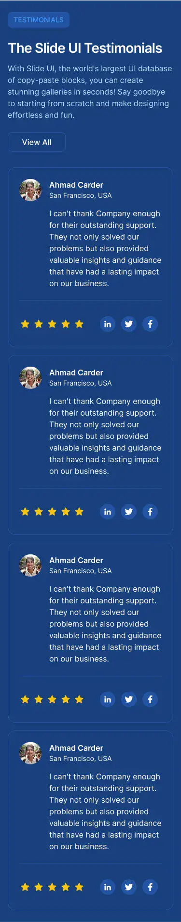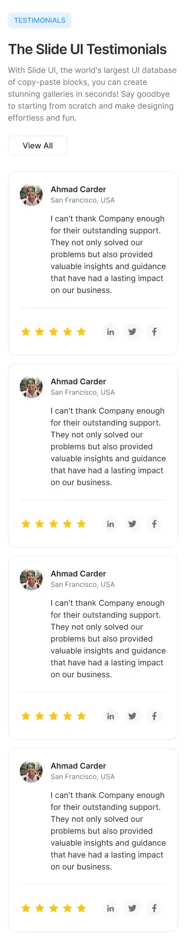 View Testimonial blocksTechnical details, product highlights, feature breakdowns — structured for clarity and mobile responsiveness.