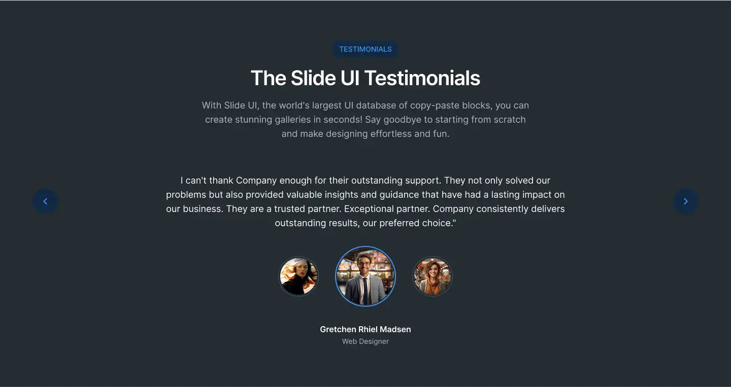 High-trust testimonial sections with avatars, logos, quotes, or carousels. Designed to increase credibility and conversions.