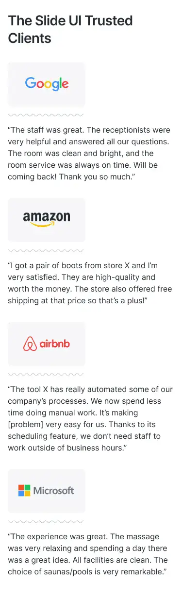 Trust-building review blocks that show user feedback, star ratings, or real testimonials with proof elements.