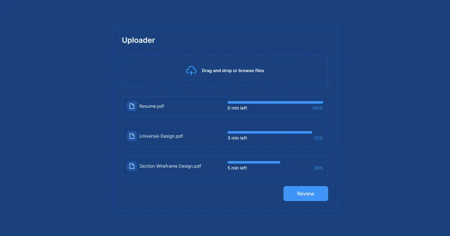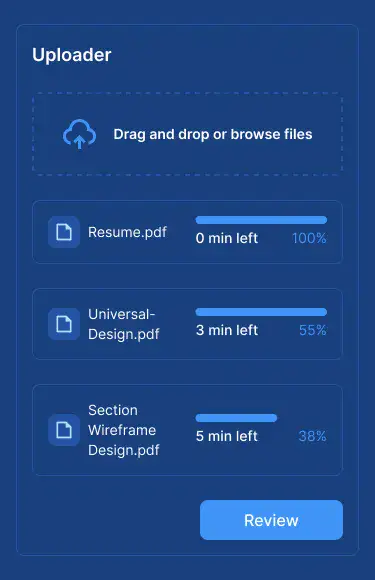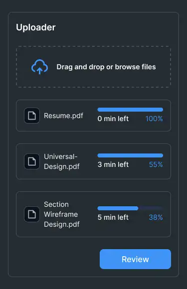 Simple drag-and-drop upload boxes, download areas, or asset release blocks.