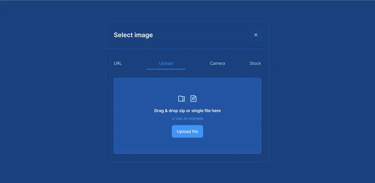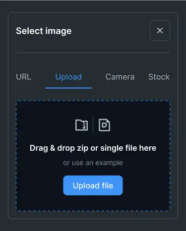 Simple drag-and-drop upload boxes, download areas, or asset release blocks.