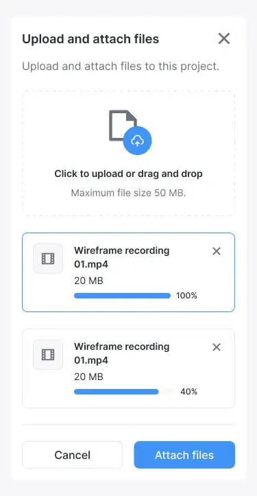 Simple drag-and-drop upload boxes, download areas, or asset release blocks.