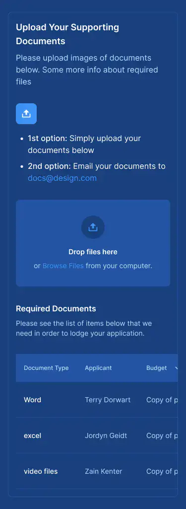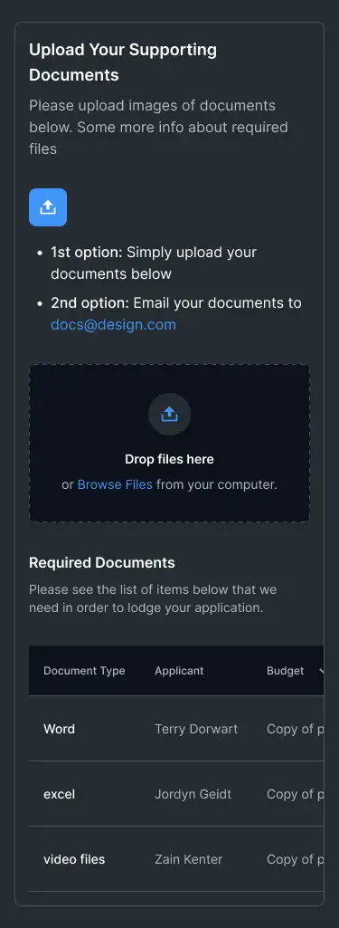 Simple drag-and-drop upload boxes, download areas, or asset release blocks.
