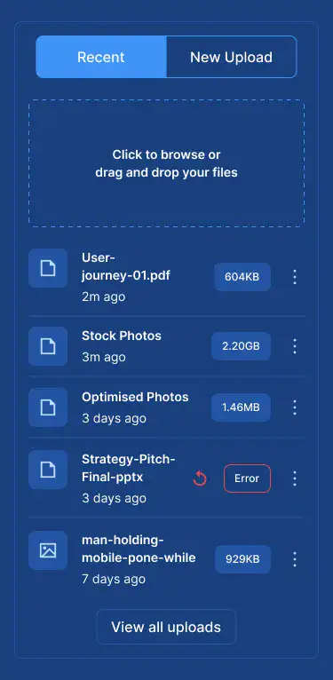 Simple drag-and-drop upload boxes, download areas, or asset release blocks.